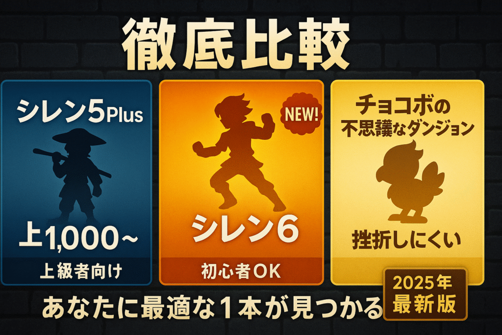 「Nintendo Switchでローグライクゲームを始めたいけど、どれを選べばいいか分からない…」 「シレン5plusとシレン6、どっちを買うべき?」 「チョコボの不思議なダンジョンって初心者でも楽しめるの?」 そんな悩みを抱えているあなたへ。 この記事では、S... -