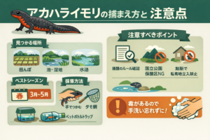 この点について、魚津水族館が行った調査では、採集場所の異なる複数のアカハライモリの皮・筋肉・内臓を分析した結果、個体差はあるものの全地点から毒化個体が確認されています。また、飼育下(野生の餌を与えない環境)で育てた個体からはテトロドトキシンがほとんど検出されないことも明らかになっており、毒素量は食物由来で変動することが示唆されています。これは、飼育個体が必ずしも高い毒性を持つわけではないことを意味しますが、野生採集個体を扱う際は注意が必要です。