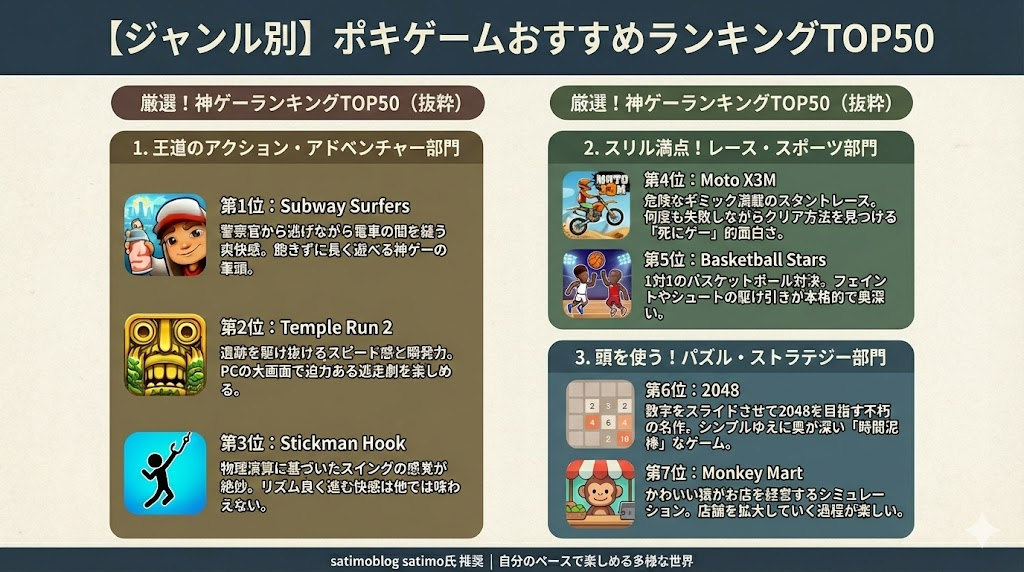 この記事では、膨大なタイトルの中から、実際にプレイして「これは面白い!」と太爆判を押せるおすすめのポキゲームをランキング形式で50選ご紹介します。