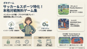 ポキゲームとは、PCやスマートフォンのブラウザ上で直接動作する無料ゲームのポータルサイトです。